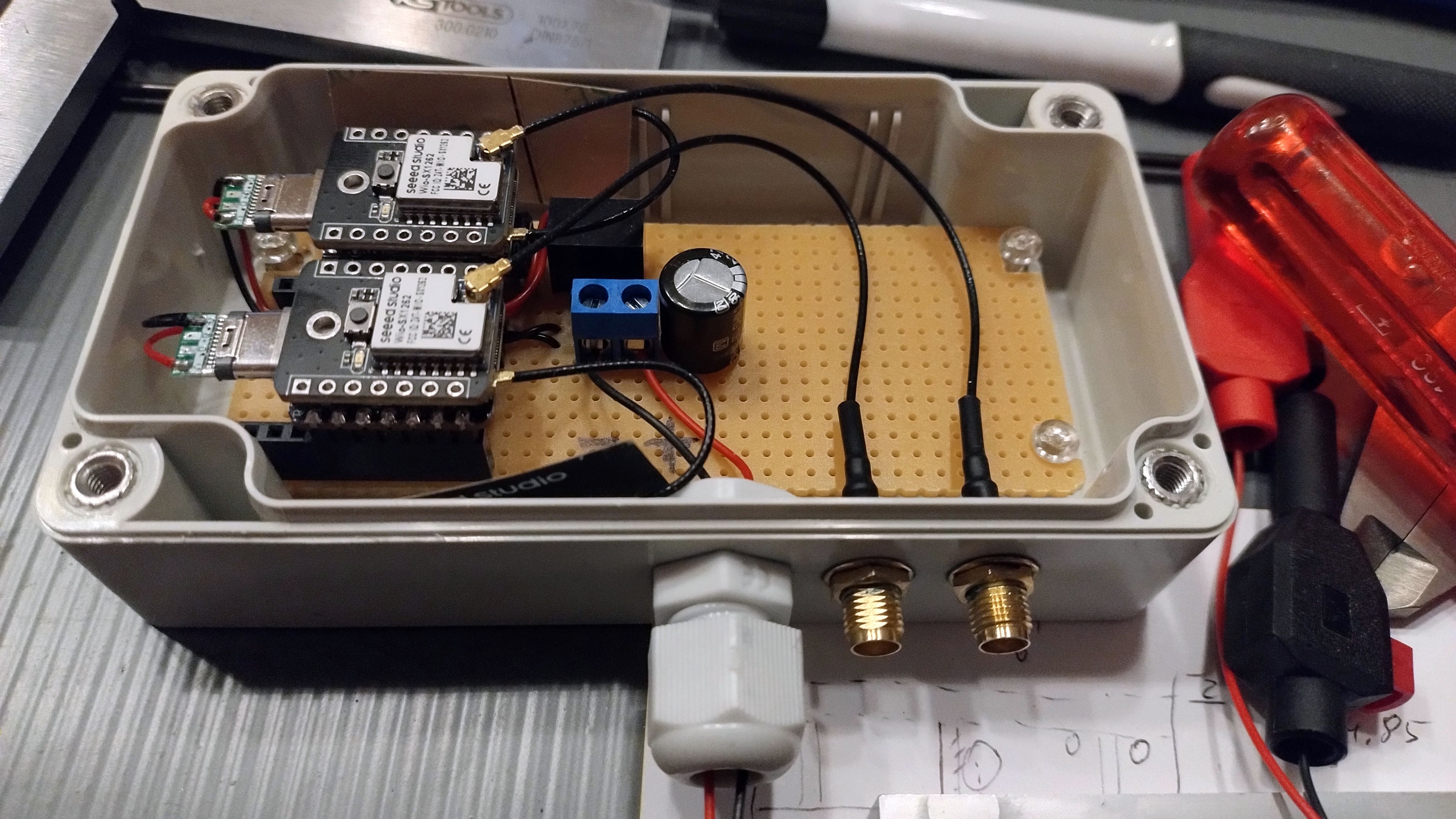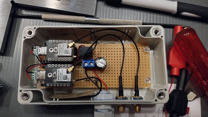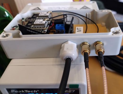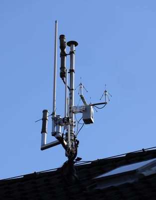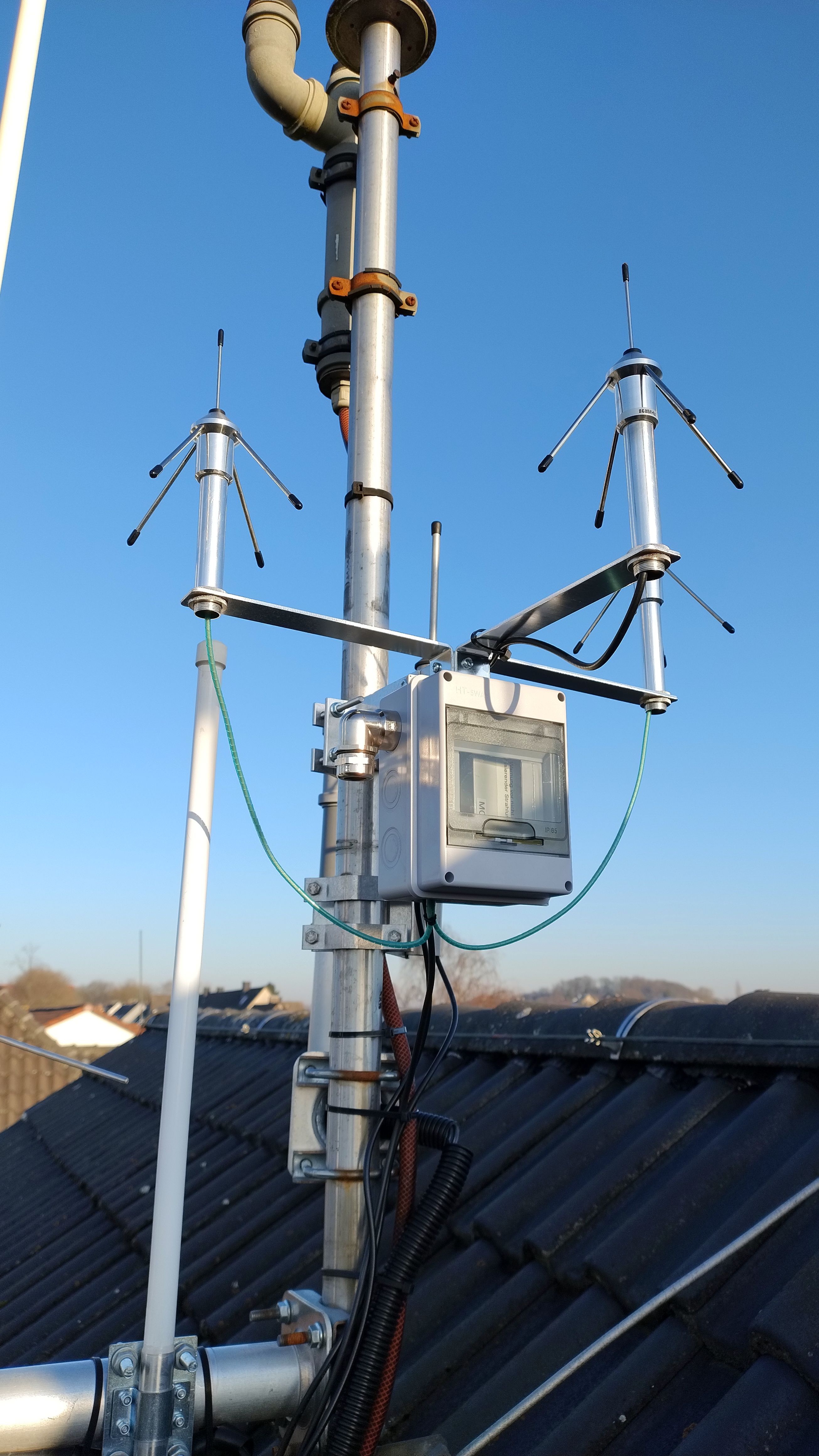 {Repeater für Meshtastic und Meshcore} Bilder des Aufbaus der Repeater-Anlage am Standort Hattingen / Welper. Repeater für Meshtastic und Meshcore. 24V Fernspeisung (USV) 3* GP-Antenne (Meshtastic, Meshcore, LoraWan)
